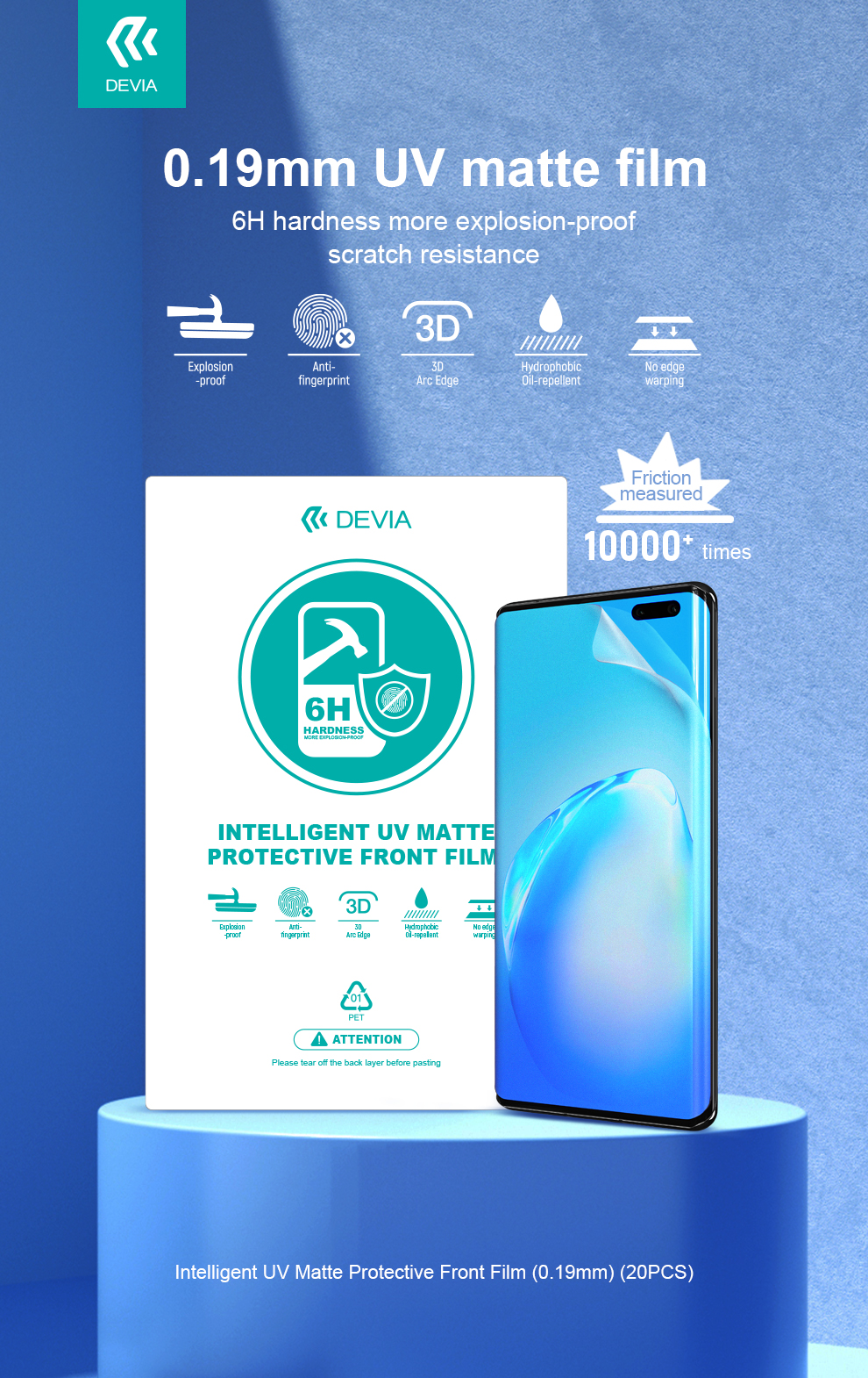 et antidéflagrant La surface du film UV brille comme neuve et bénéficie d’une dureté de 6H, offrant une résistance supérieure aux chutes et aux rayures. La finition mate est résistante à l’usure, améliorant de deux fois la protection contre les rayures et gardant votre nouvel appareil en sécurité.